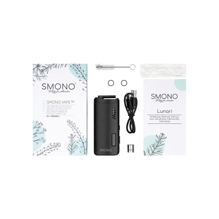 | Smono Lunari Vaporizer | Magnetic Ceramic Mouthpiece | Cleaning Brush & Scraping Tool | USB-C Charging Cable |